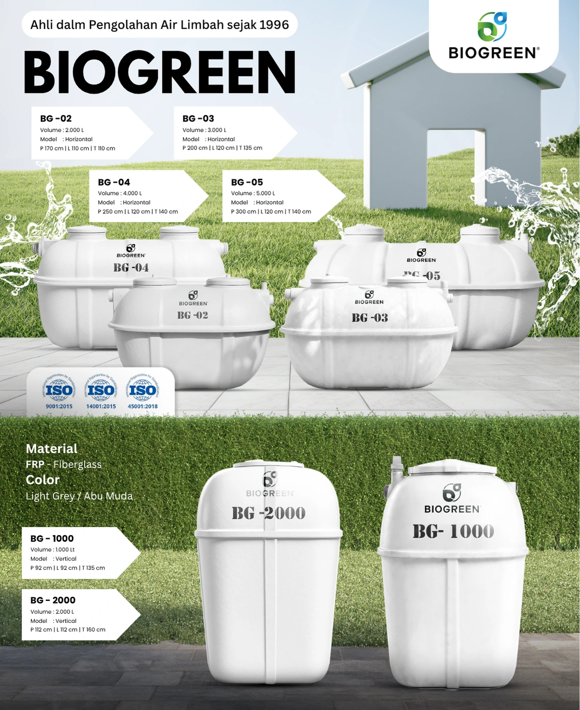 PT. Biogreen IPAL Indonesia adalah perusahaan manufaktur terkemuka di bidang produksi fiberglass dan pengolahan air limbah domestik maupun industri. Berdiri sejak tahun 1996 dan berlokasi di Tangerang, kami telah berkembang menjadi pelopor solusi ramah lingkungan